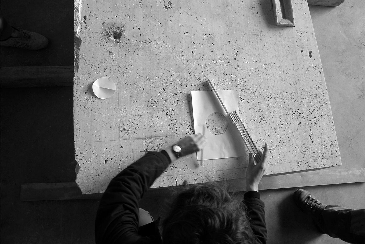 a travertine monolith is the concrete reference and symbol of the burial place. it is possible to discover the pyramid-shaped hollow body excavated in the block by getting closer to the grave. rainwater is collected in the monument and generates reflections between earth and sky suggesting a never-interrupted correspondence between the deceased and the living. the sky is reflected and it refers to a spiritual and religious dimension through the intimate experience of memory. the monument and the cross are separated to highlight the meaning of each element, each part has a higher meaning.