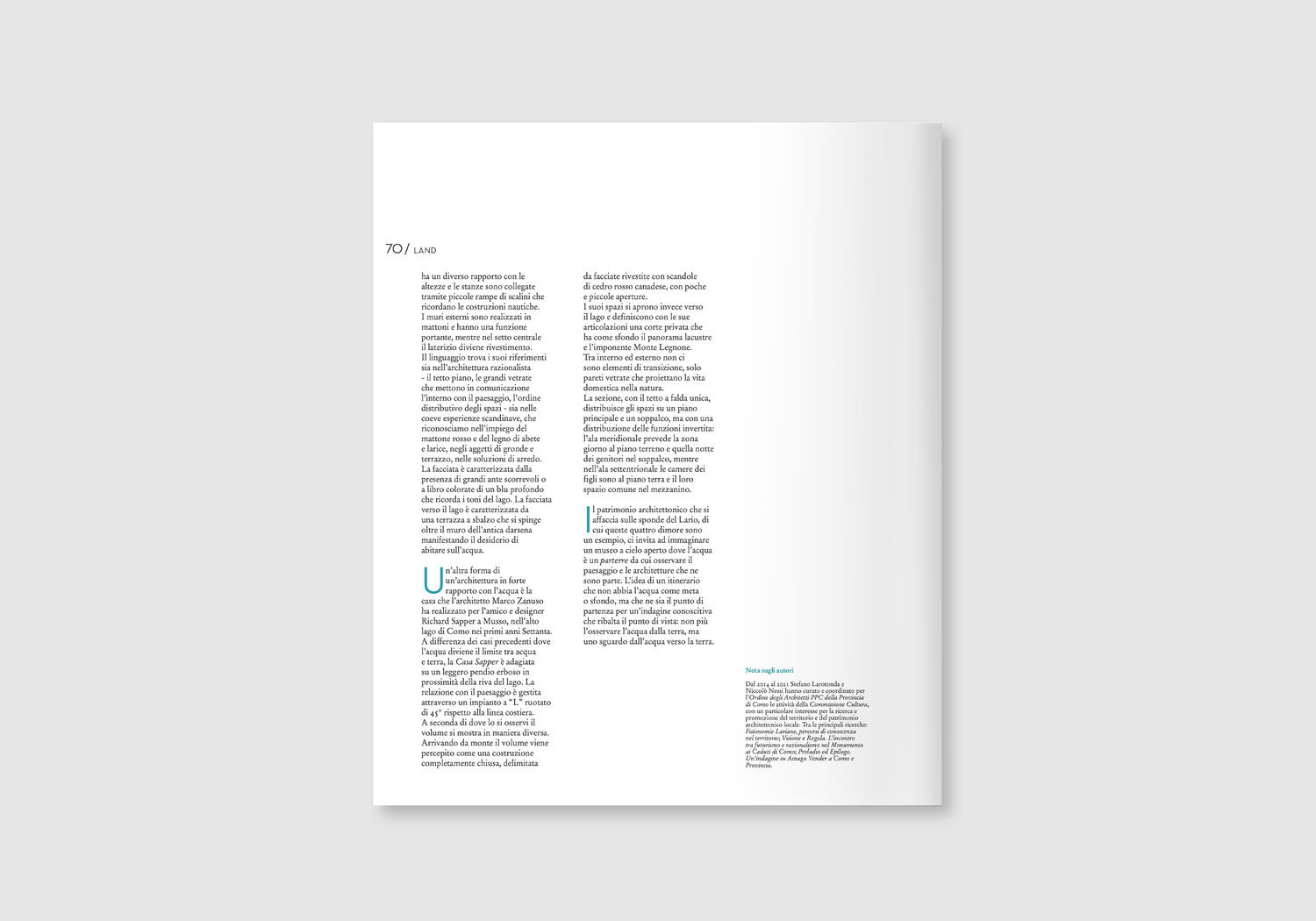 Larotonda S., Nessi N., Paesaggi d'Acqua, in "ARKMagazine - cura", n. 45, S.E.S.A.A.B. Spa, Bergamo, marzo 2023, p. 63-70